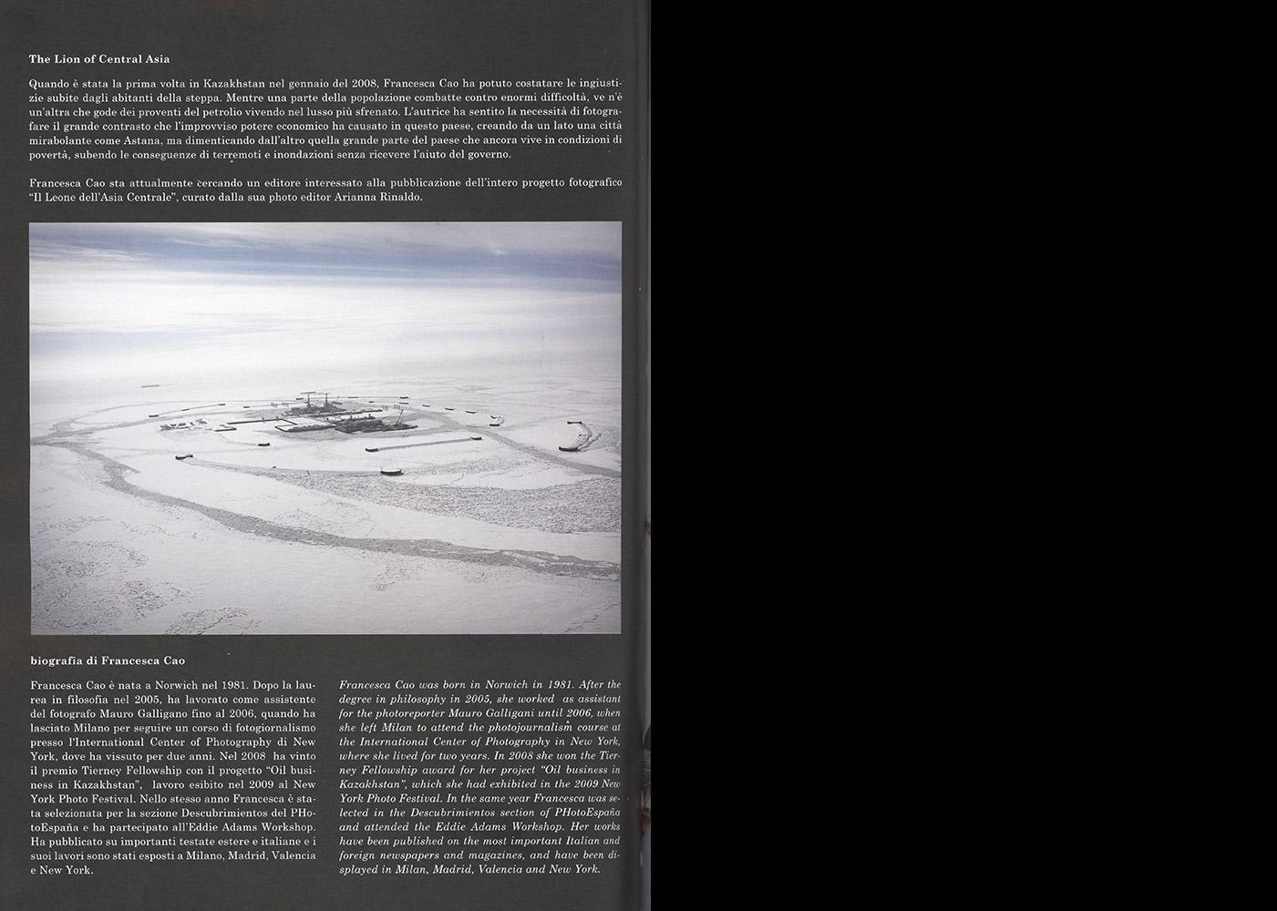 In 2008 earns the Tierney fellowship for her work “The Lion of Central Asia”, that has been exposed at the New York Photo festival ’09.