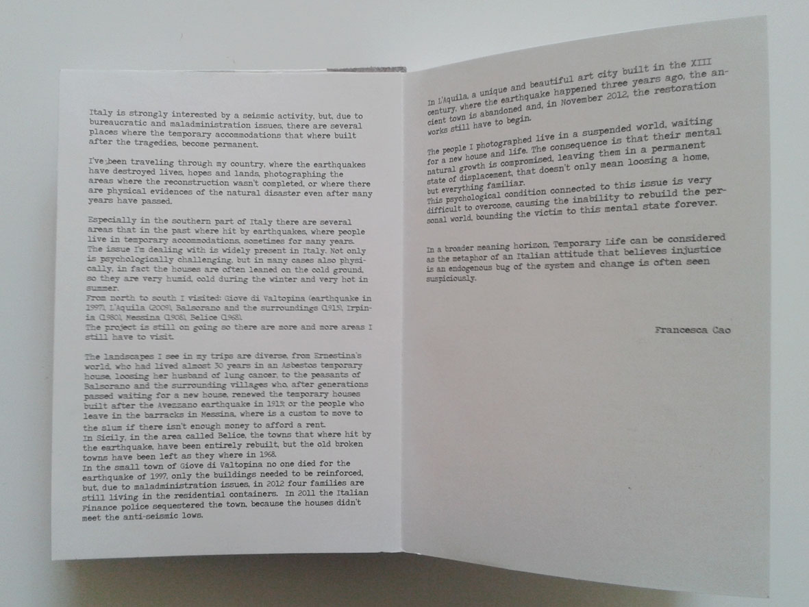 First version of the Temporary Life dummy book that has been selected by the jury of the Unseen Dummy Award in Amsterdam as a finalist in 2013, curated by Irene Alison/DER*LAB