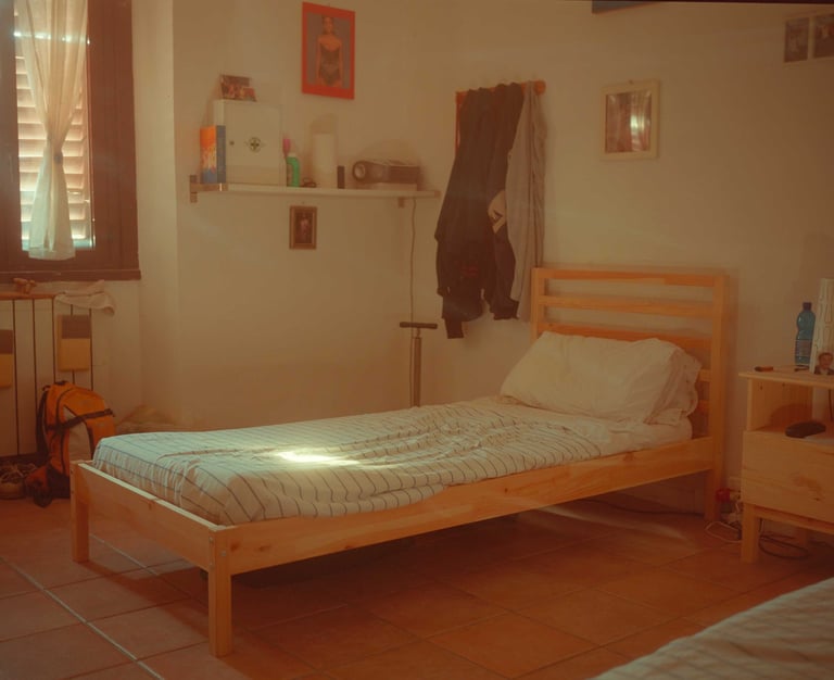 The work explores the sense of displacement and emotional distance experienced within a shared institutional environment.