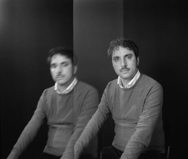 In these portraits, I use the Errore Metodico™, an analog technique based on the partial intentional overlapping of frames.