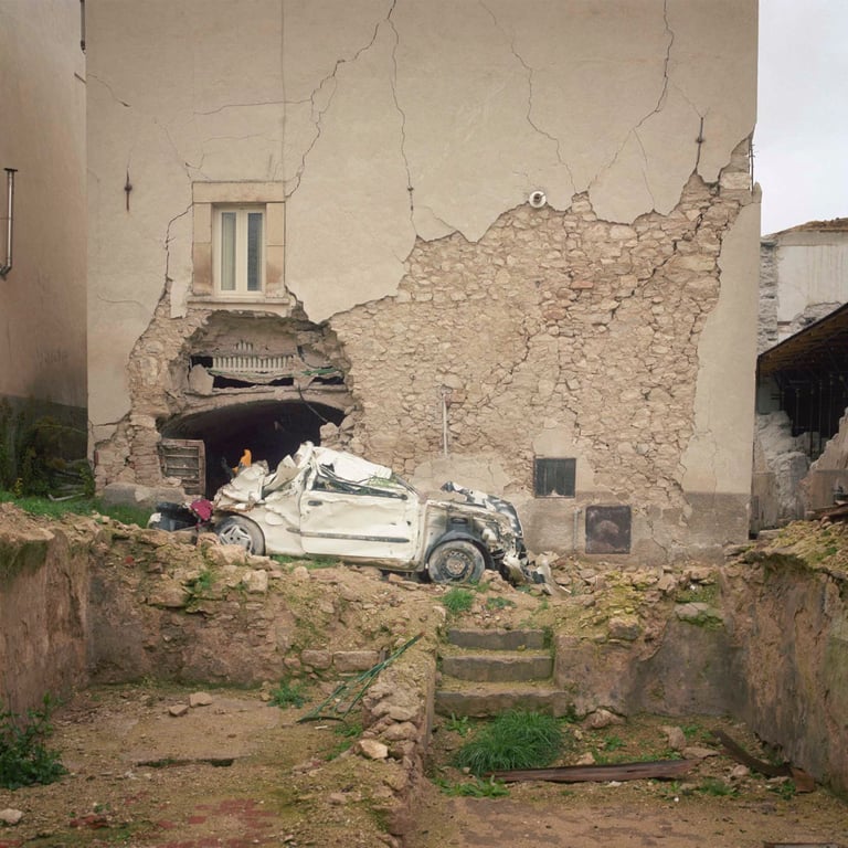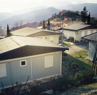 Developed through journeys across earthquake-affected regions of Italy, the project observes landscapes shaped by emergency architecture, unfinished reconstructions, and fragile dwellings. The images move between interiors and exteriors, private spaces and collective environments, tracing a condition suspended between permanence and provisionality.