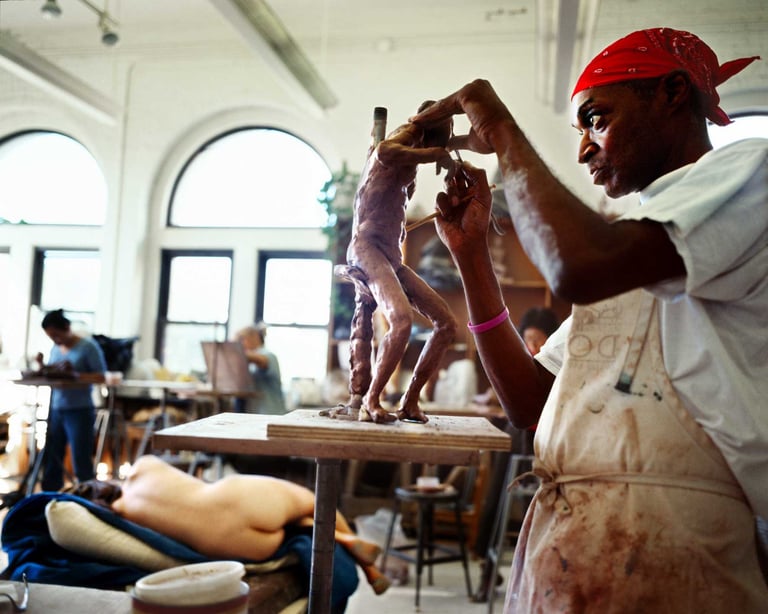 He won a scholarship and started sculpting; in June 2008 one of his peaces was exhibited in the commerce city back in New York.